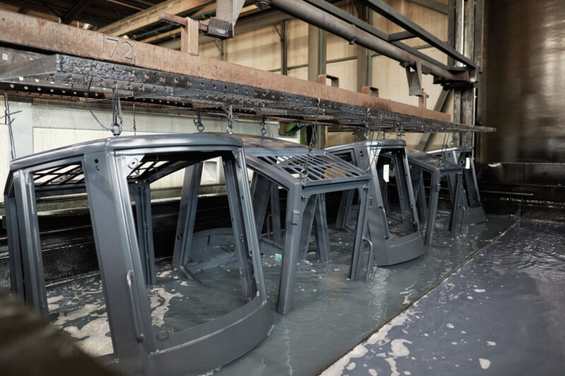 I manufatti vengono immersi in un bagno di vernice diluita con acqua, per una protezione uniforme e resistente.